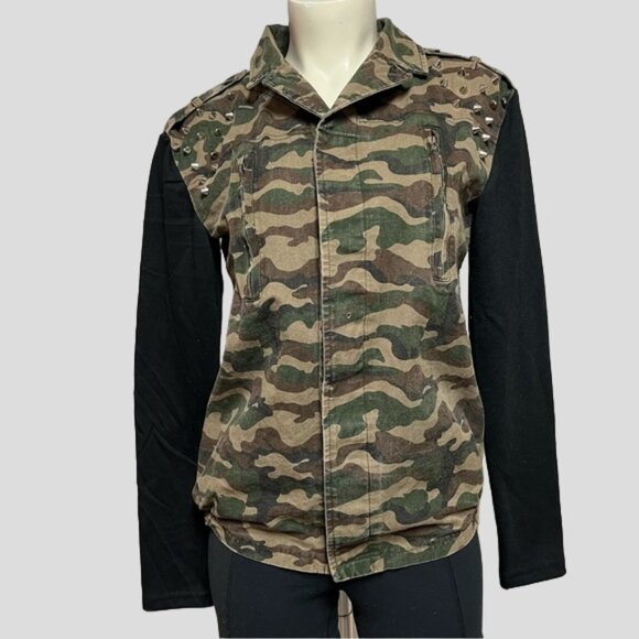 Buffalo David Bitton Green Camo Studded Button Down Jacket