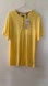 Bright yellow Henley tee. Short sleeves. Casual and comfortable style.