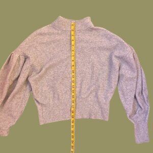 Neckline & Style: Classic turtleneck with sculpted balloon sleeves and ribbed cuffs, hem, and neckline