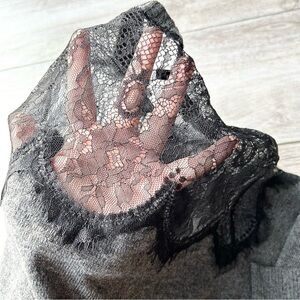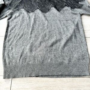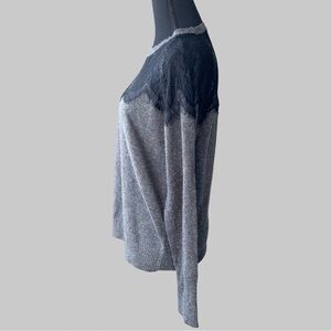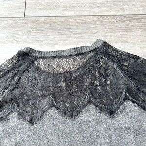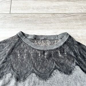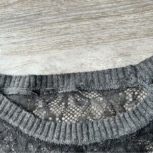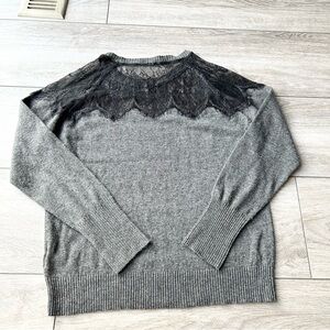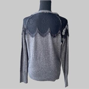 Pullover sweater featuring illusion lace yoke with scalloped cutwork trim