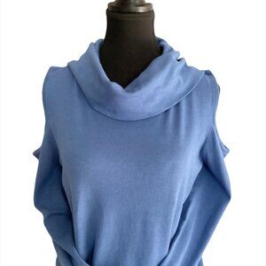 Buffalo David Bitton Women's Cold Shoulder Cowl Neck Top LG Blue 90s