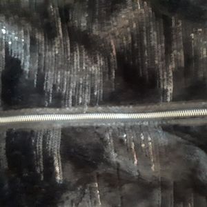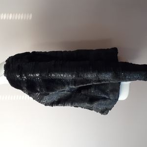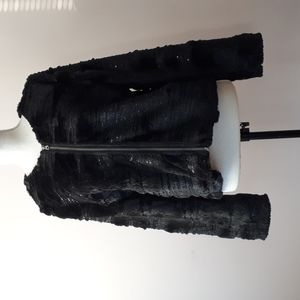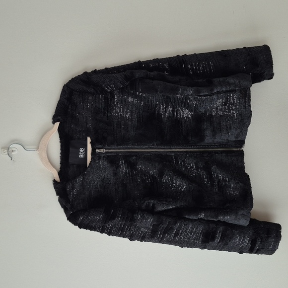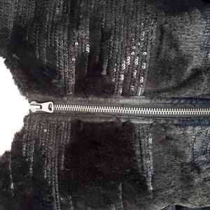 Black faux for patchy jacket with black sequin patches throughout. Silver zipper closure. Dresses up any outfit. Pit to pit is approx 19.5" and length is 22". Hard to capture how pretty it actually is. Fully lined black satin. New with tags.