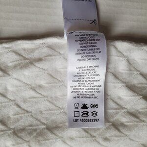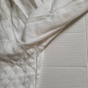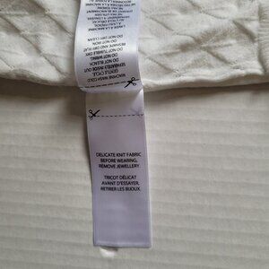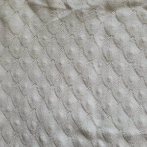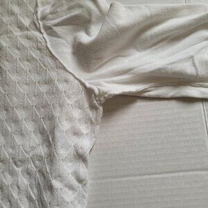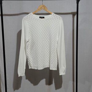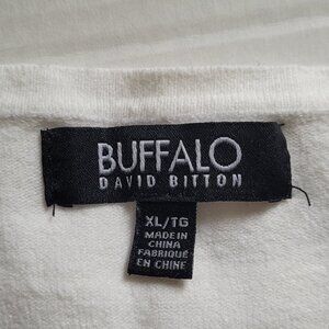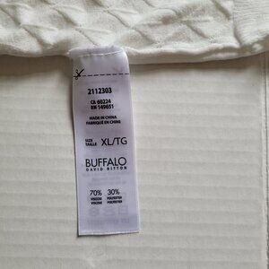 Buffalo pullover sweater. White with a crochet style knit front. Long sleeves. It is marked a size XL. 70% viscose and 30% polyester. It is beginning to pill a little in places, shown in the photos. Minimal wear from normal use. There are not any stains, tears, or holes. Very good, gently used condition.