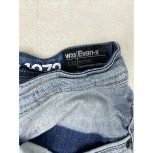 Buffalo Evan-X Jeans Men's 33x32 Slim Straight Stretch Light Blue Whiskers