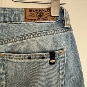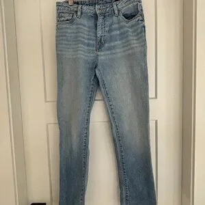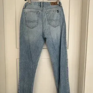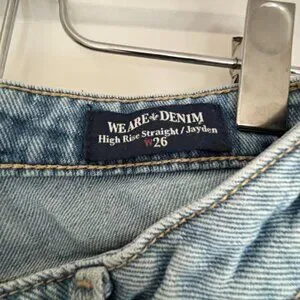 Good condition, no stains. Size 26, high rise straight fit. Frayed cuffs and light wash.