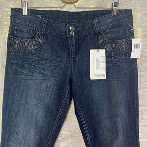 - Buffalo Jasleen Stretch Cigarette Low Rise Slim Fit Jeans Beaded Pockets. These low rise slim fitting jeans have beading and metallic embroidery on the pockets