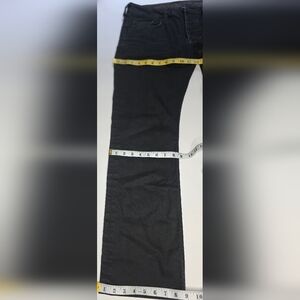 Button up black jeans, 5 pocket, straight leg. stiff denim in very dark wash. Lightly used, if at all.