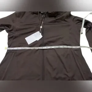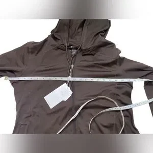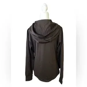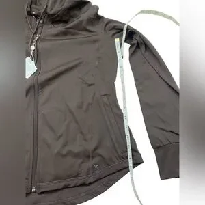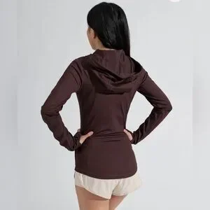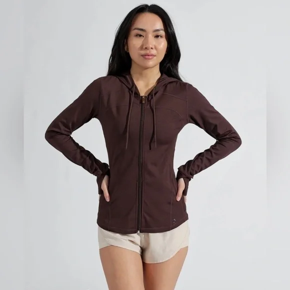 This full-length jacket has a zip front, a hood, and features thumbholes on the sleeves. Made with our signature Elysium fabric, it offers a silky smooth, sleek texture with sweat-wicking properties for a perfect body contouring fit.