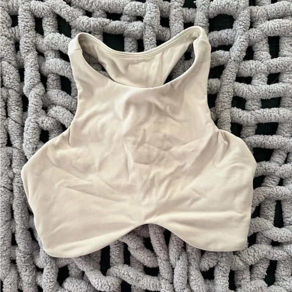 Buffbunny size M in good condition. Experience comfort and style with this cream racerback bralette. Perfect for everyday wear. Cute under bust detail!