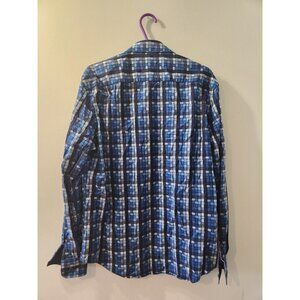 Bugatchi Men Shirts Long Sleeves Squared Pattern Blue Size Large Pre-Owned
