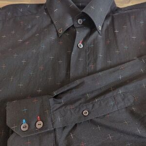 Bugatchi Men’s Black Multicolour Long Sleeve Button Down Shirt M