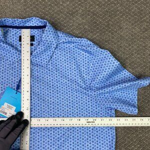 Bugatchi Polo Shirt Men's Large Periwinkle Blue 8 Way Stretch Golf Geometric NWT