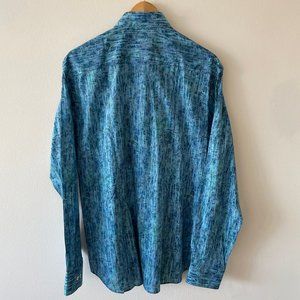 Bugatchi Shirt - Blue Patterned - Large - Shaped Fit