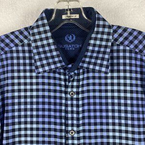 Bugatchi Shirt L Shaped Fit Flip Cuff Long Sleeve Blue Black Check Button Down