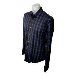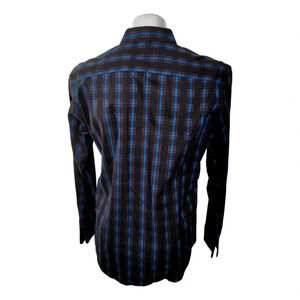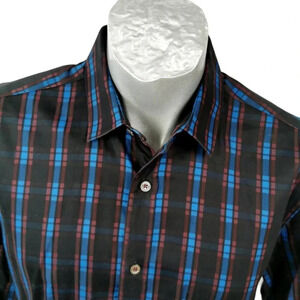 Bugatchi Umo Mens Shirt Size M Blue Black Burgundy Check