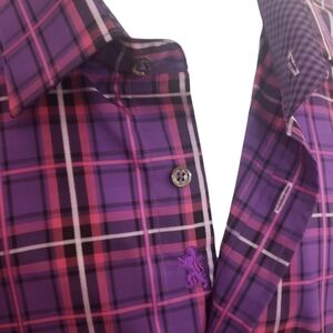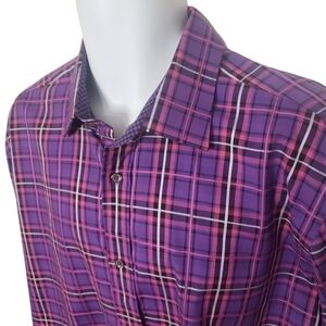 Bugatchi Uomo Shaped Fit Purple Preppy Luxury Office Fall Plaid Shirt - Men's