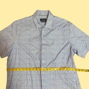 Step into effortless sophistication with this Bugatchi OoohCotton Tech short-sleeve button-down in a soft sky blue floral microprint. Crafted from advanced 8-way stretch fabric, this shirt offers both breathable comfort and modern elegance, making it ideal for warm-weather outings, vacations, and elevated casual looks.