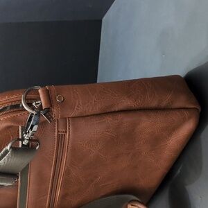 Bugatti Valentino RFID men's brown cognac vegan leather briefcase.