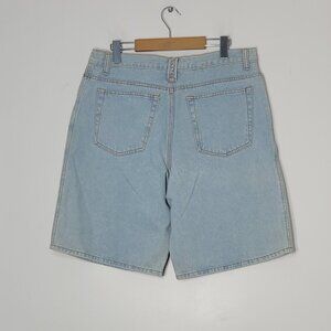 Vintage Bugle Boy 100% Cotton Unisex Light Wash High Rise Retro Jean Short Pockets Size 34