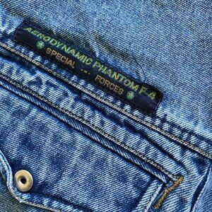 Vintage Bugle Boy cargo jeans in light wash denim have "special forces" logo patches at the back waistband & right thigh pocket. Two pockets at front hips, two cargo pockets at front thighs, and two back pockets with snap closures. 100% cotton denim. Fits waist size 32" - see below for garment measurements. Pre-owned condition: denim has fading from normal wash & wear. Back of jeans has a faint rust-colored spot near the right back pocket (see photos with ruler). Logo patch above right cargo pocket is partly unstitched at top left corner. The pictures show the actual item that you will receive.