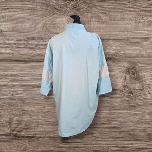 Light blue short sleeve tee. Features a unique graphic design. Comfortable and stylish. Length 27" Bust 46" sleeves 11"