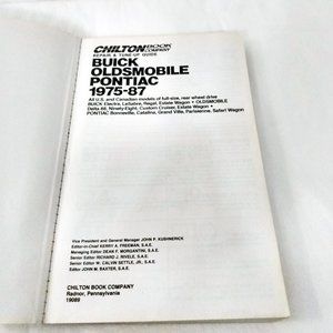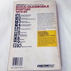 1975-87 Buick/Oldsmobile/Pontiac Repair & Tune Up Guide. Chilton Book Company. Soft Cover Repair Guide With 16 Pages In Full Color. Outside Of Book Has Some Ware-Staining. Found Some Highlighting & Ink On Inside Pages, Could Be More That I May Have Missed. Condition Is Used