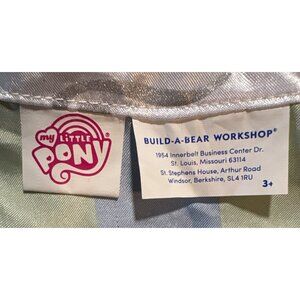This Rainbow Dash plush toy, part of the My Little Pony collection by Build-A-Bear Workshop, features vibrant colors and a soft, plush texture. It's designed with a detachable rainbow-colored cape that adds playful flair. This collectible toy is suitable for children aged 3 and up, making it a delightful gift for fans.