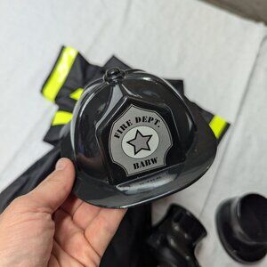In good condition, hat, coat, trousers (with opening for the tail) and black boots.