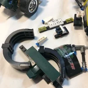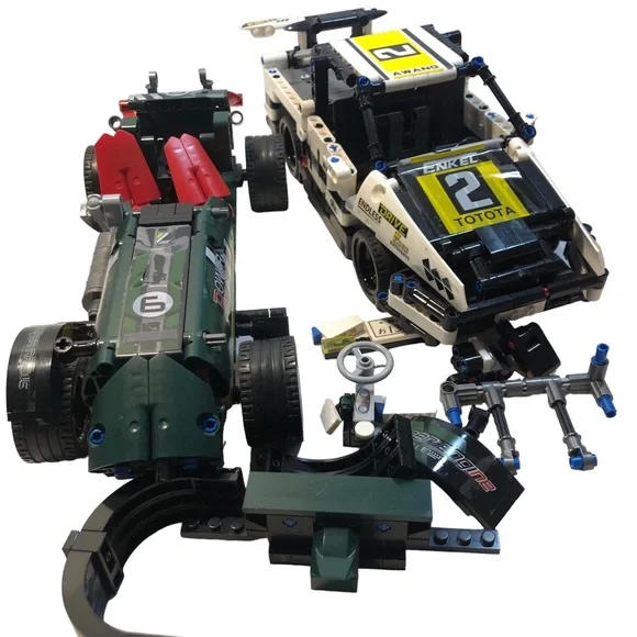 Not Lego!! As is no instruction, pull back working some parts not assembled/some missing