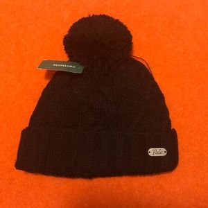 Winter is coming! Bula Taylor black pompom diamond cable beanie / tuque made in Canada new with tags. Soft and warm acrylic ribbed knit, unsewn cuff, fully lined with polar fleece, chunky style. Marked One size. This item comes from a smoke free, pets friendly home. Recycled bags/box used when possible. Please, let me know if you'd like any additional pictures and/or measurements or other info. Thanks for watching!