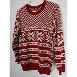 Bula Women's ski sweater Holiday wool jumper Red and white snowflakes SZ L