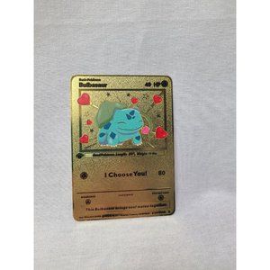 Bulbasaur I Choose You Love Heart Valentine Gold Metal Card- Brand new