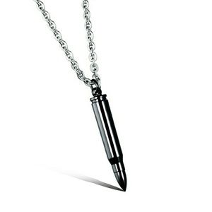 Mens Jewelry - Titanium Stainless Steel Bullet Pendants Necklace - Silver,Black & Gold with Link Chain.