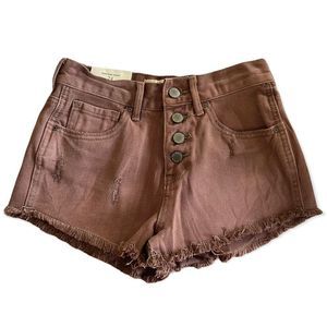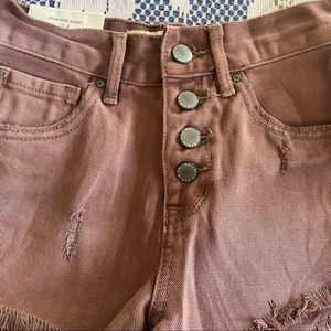 Bullhead Denim Co. • Dusty Rose Exposed Button High Rise Cutoff Shorts