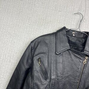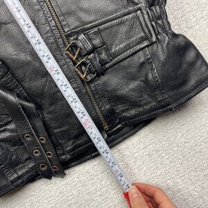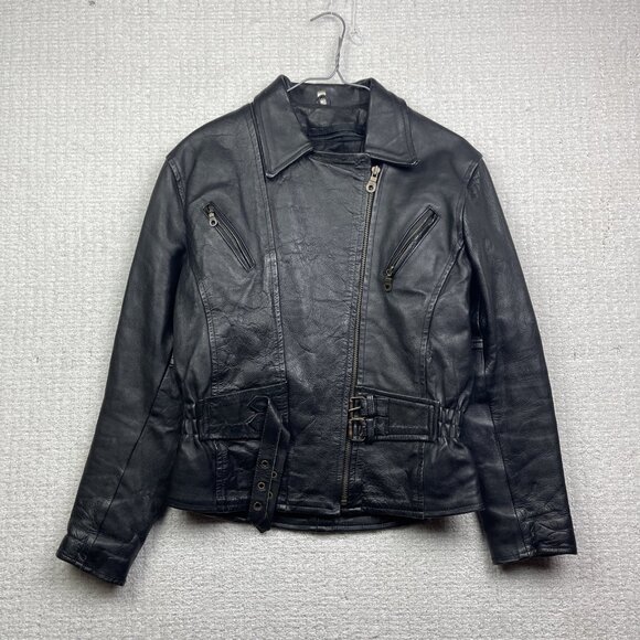 Bullmaster Leather Motorcycle Belted Biker Jacket Café Racer Black Women Sz M