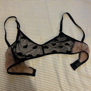 The Ray bra is a simple mesh bra made in black heart mesh with pale pink back panels.