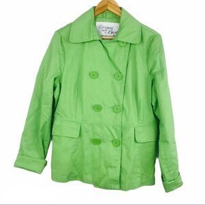 Equipment By Bum Lime Green Collared Peacoat, Double Breasted Three Lines Cuffed women utility Jacket.
