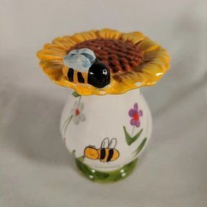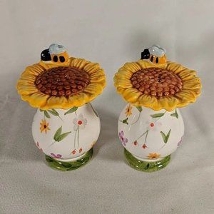 Bumblebee Sunflower Salt & Pepper Shakers Ceramic Hand-painted Bee Flower Yellow
