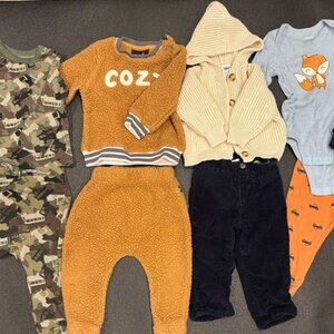 12-18M Stylish and cozy 6-piece fall/winter bundle. Includes full outfits and layering pieces. Brands include Carter’s, Old Navy, Joe Fresh & Peckle.