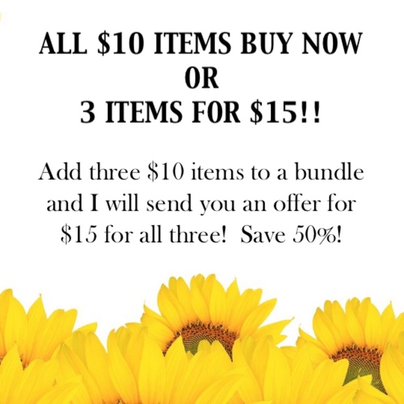 Add three $10 items from my closet to a bundle and I will send you an offer for $15 for all three!