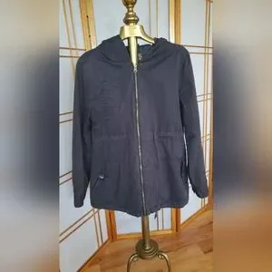 Size L Element Navy Blue zipper front Spring/Fall Jacket. Can be cinched at the waiste and bottom. Good used condition