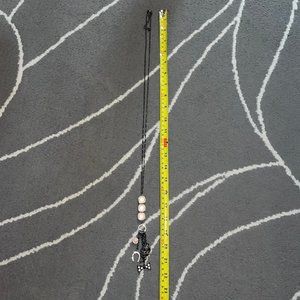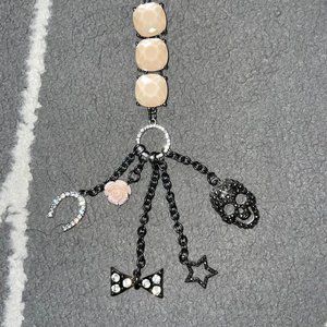 Sweet and sassy rocker ultra long necklace with oodles of bling and lucky charms.