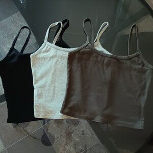 Bundle Lot of 3 Cotton Micro-rib Tank Tops in Black, Grey, Olive in Size Medium