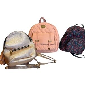 3 mini backpacks, Pink is new with tags, Metallic pink and unicorn print. There are no flaws, all in great condition ( see photos for measurements)