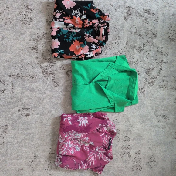 3 of these tops as a spring / summer bundle! Zara ruffle semi sheer blouse, green chiffon blouse, floral open light blazer