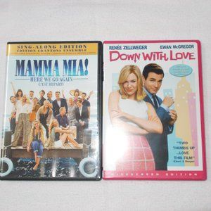 10 Dvds in very good playable condition, original cases. Movies are as shown: Down with Love, Mamma Mia (Here we go again), Cocktail, The Lake House, AFV Salute to Romance, AFV Guide to Parenting, Fantastic Four, A Star is Born, Dolphin Tale, National Velvet