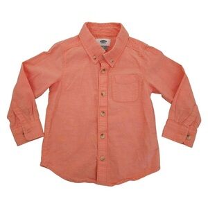 Old Navy button down long sleeve shirt, peach / yellow / green, size 3T