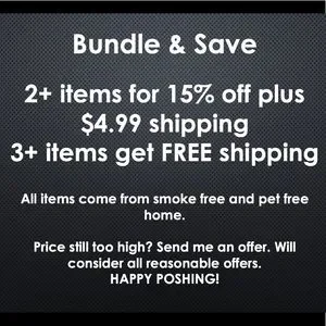 Hi @suzefashion thank you for the follow! Im Tink! I offer a 10% discount on Bundles of 2 Items or More so feel free to take a look around! Thank you and have a great day! Happy Poshing! 😉