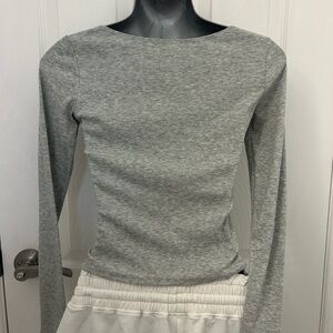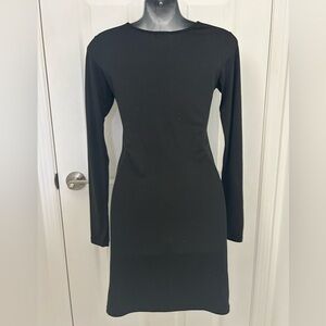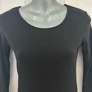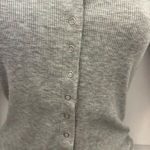 Grey, ribbed crop top with buttons down the front and a soft, black, bodycon dress with long sleeves. Two simple staple wardrobe items for a fraction of the price. Both in great condition. Grey top has scoop neck and long sleeves. 14” pit to pit. 18” from shoulder to hem. Dress is SO soft and easy to pull on with tights or by itself. Long sleeves and goes to knee. 15” pit to pit, 34” from shoulder to hem. Stretchy. Both listed as XS.