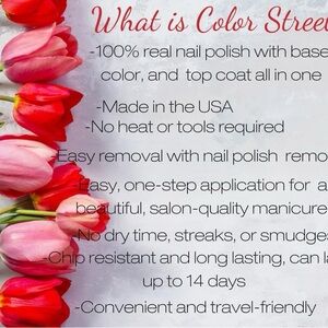Color Street nail strips are real nail polish in a dry strip form, with base coat, color coat and top coat in every strip. It's a quick, easy way to give yourself a salon-quality manicure without any mess or wait time.